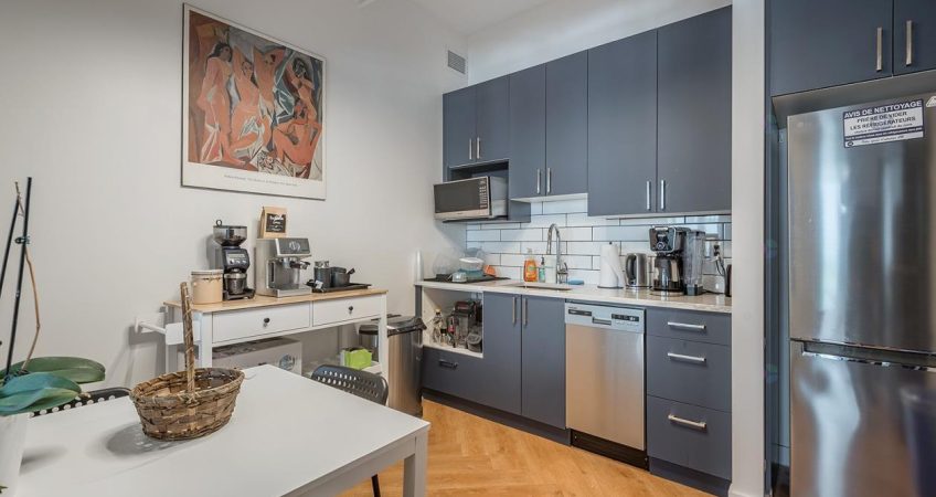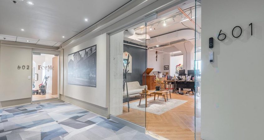 Office space for rent Montreal Plateau-Mont-Royal, 4446 St-Laurent Blvd, suite 602. Available now. Beautiful 1,800 sq.ft. office space located on the 6th floor of a prominent 9-storey building in the heart of the Plateau. Suite 602 features 4 closed offices, an open work area, a conference room, and a kitchenette. Recently renovated with a modern finish, the space is bright, spacious, and move-in ready. Ideally located near all services with easy access by car, bike, or public transit. Walk Score 100. Net rent. $4,800 + tx + electricity