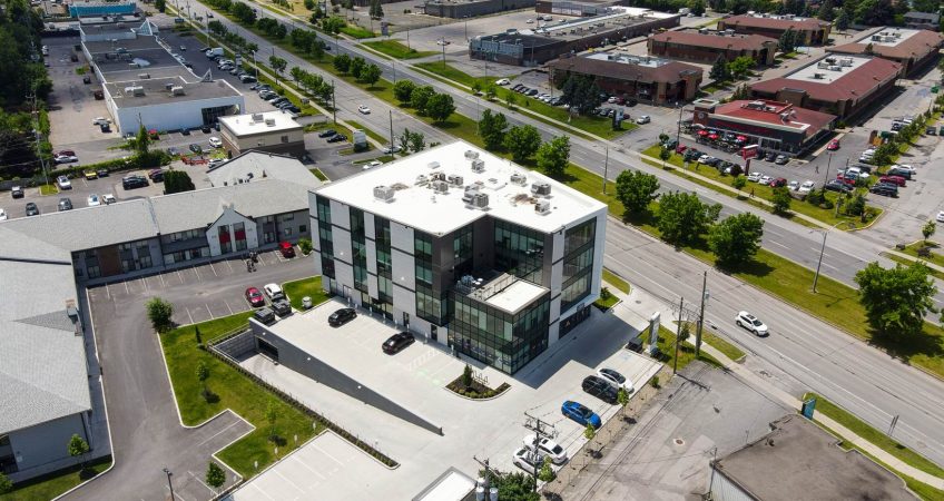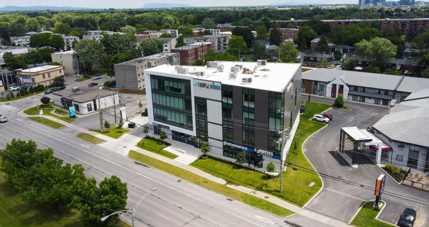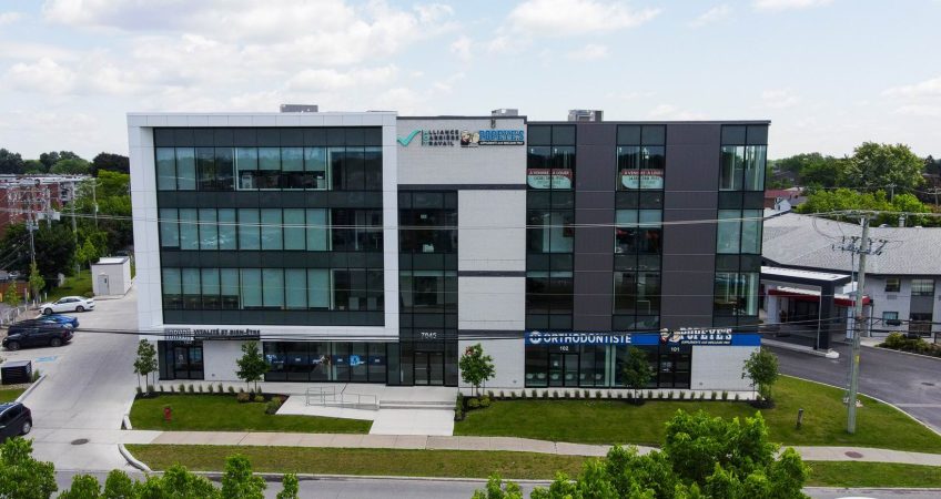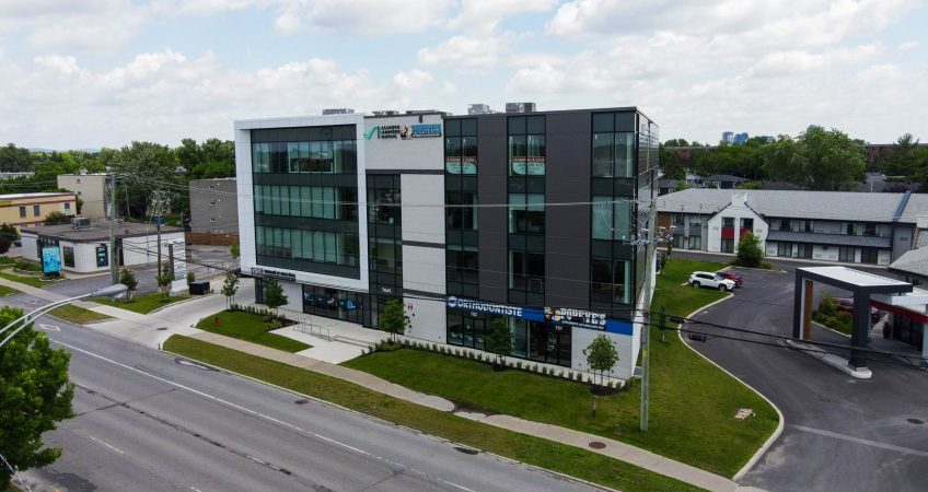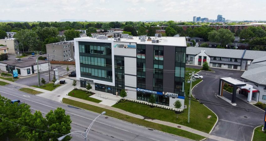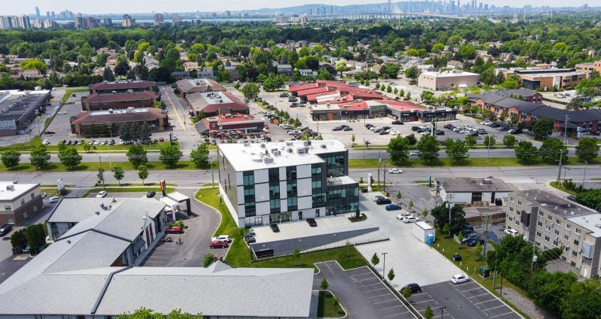 Espace Coworking / Bureau à louer Brossard — 7845 boul. Taschereau. Construction neuve, espaces clé en main, à proximité du terminus Panama. Architecture moderne avec fenestration abondante. Ascenseurs, 120 espaces de stationnement (Intérieur 62, extérieur 58).