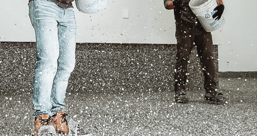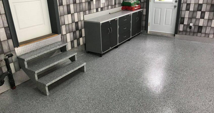 • Système de polyaspartique avec flocons de vinyle les garages, les balcons et escaliers extérieurs et les planchers intérieurs