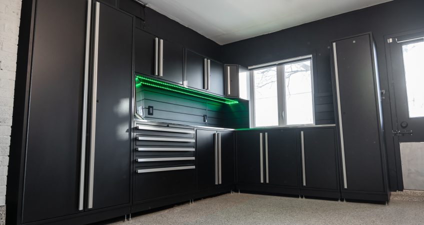 • Aménagement de garage, panneaux muraux et cabinets.