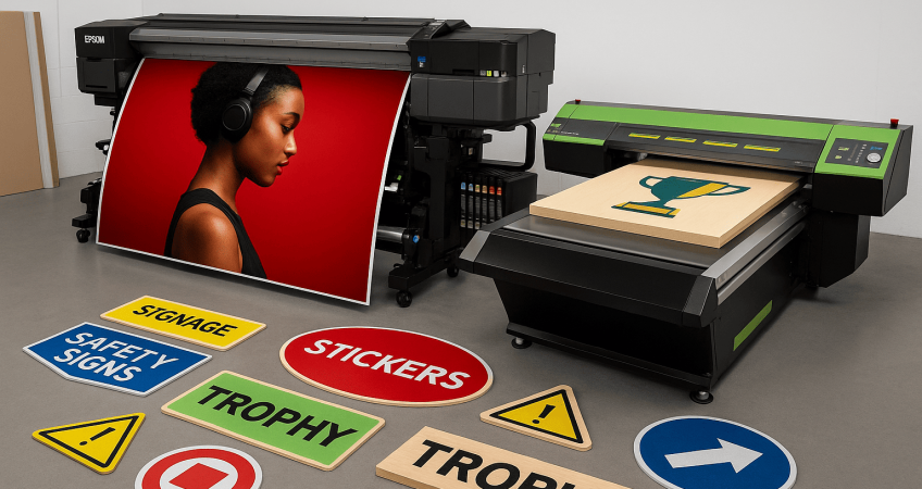• Positionnement unique sur le marché : impression grand format + autocollants spécialisés + découpe multi-matériaux (CNC + laser).
